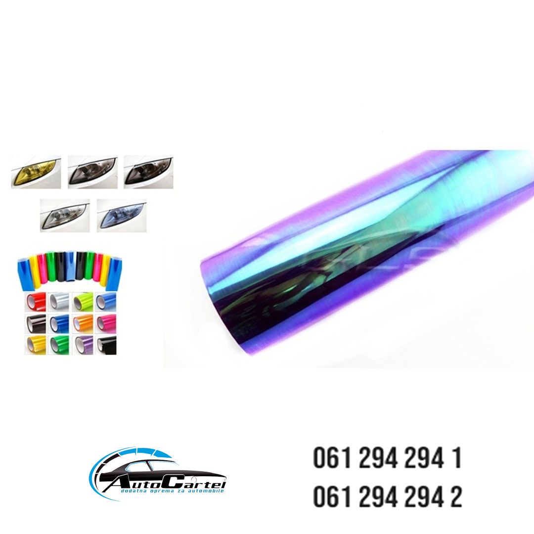 FOLIJA ZA FAROVE I STOP SVETLA.BOJA KEMELEON.CENA JE IZRAZENA ZA DIMENZIJU 0,4M X 1M.FOLIJA JE A KLASA SA ZASTITNIM SLOJEM I KUPUJE SE NA DUZNI METAR.SIRINA ROLNE 0,4M.